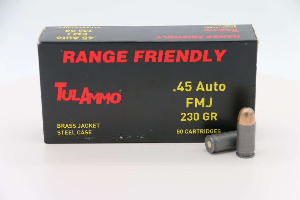 The TulAmmo .45 Auto is used for sporting and training pistol shooting in galleries and ranges. Its performance is great and its price is affordable. The ammo keeps its qualities under various climatic and weather conditions. It is Boxer primed and steel-cased. The .45 ACP (Automatic Colt Pistol) is also known as the .45 Auto. This ammo is CIP-compliant.